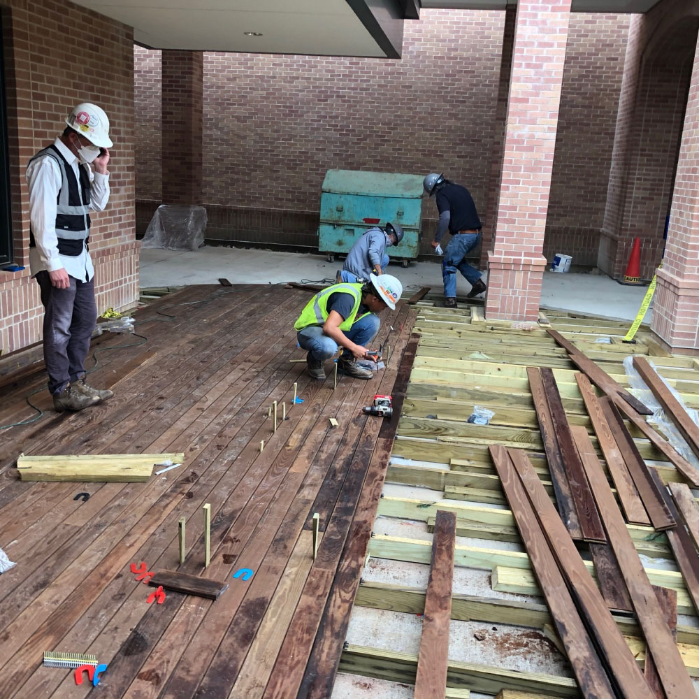 Our Deep Knowledge in refurbishment and preservation ensured the Chapel’s original benches were properly cared for. Each bench was stripped in a three-step process with eco-friendly chemicals, then re-stained with a custom-made stain made to perfectly match the original color. Rothko Chapel is famous for its stunning details that motivated us to combine the old and the new in a way that contributed to the overall beauty of the space.