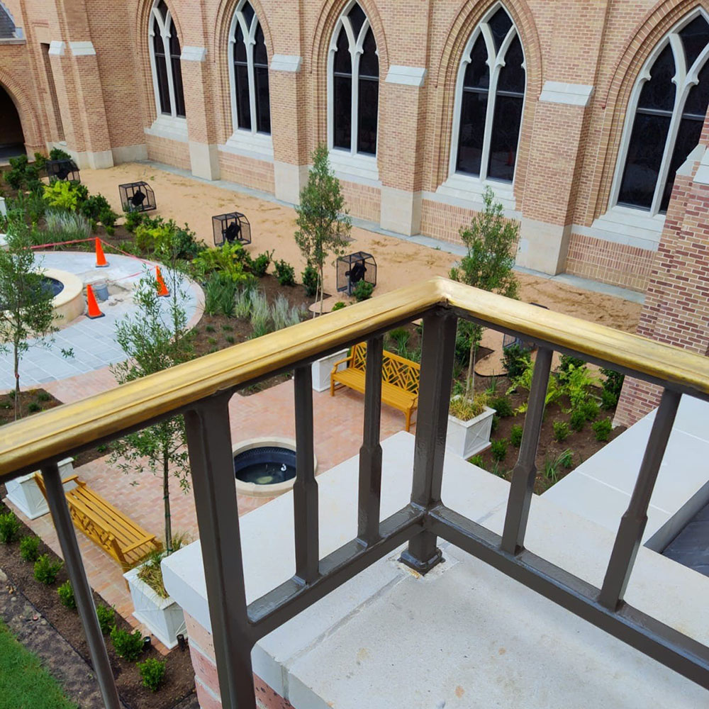 General Contractor Satterfield & Pontikes brought our team on to assist with renovations to the cathedral to create custom-forged steel railing with bronze top caps to elevate the physical structures and contribute to the grandeur of the sanctuary. Railings were also installed on the winding stairs leading up to the second floor. This proved to be a new and exciting challenge due to the precision needed to fit each piece into the unique shape and size of the staircase. Various maintenance and repair projects have been completed for the church since our initial project. The cathedral has earned several awards, including Engineering News Record Magazine’s “Best Cultural/Worship Project in Texas and Louisiana”, Associated General Contractors Texas Building Branch’s best project in the Building 3 General Contractor category, as well as their prestigious “Best of the Build” award. We are grateful for the opportunity to work in such a beautiful and historic part of Houston, and the long-standing relationship that has formed since.