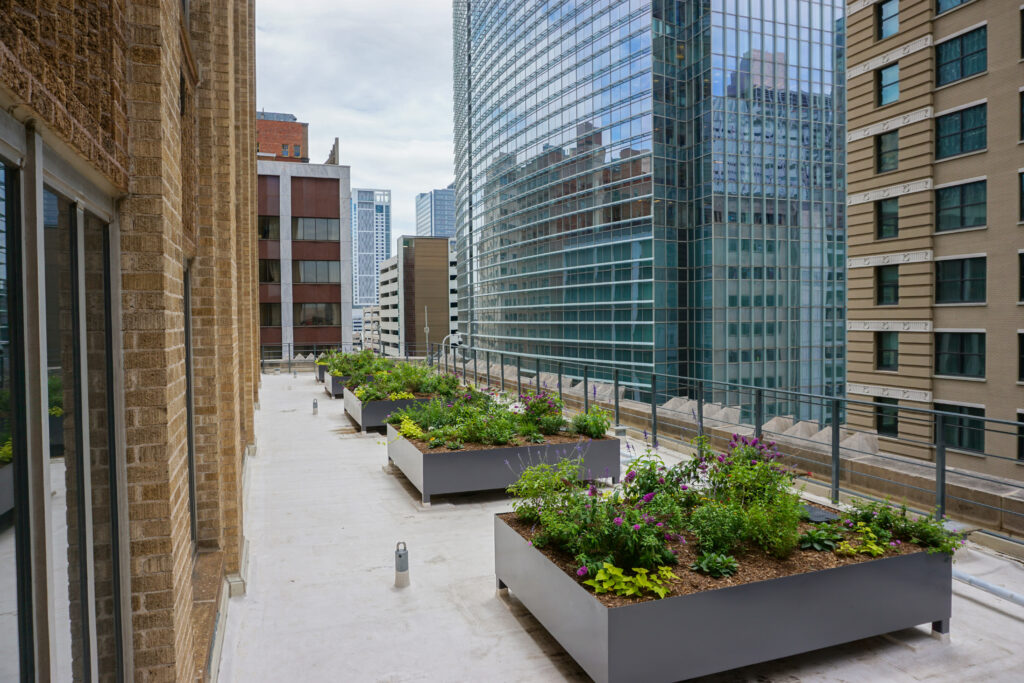 In 2022, our long-term partner and collaborator SWA Group Houston made the move to The Great Jones Building, a beautiful historic building in downtown Houston. This move kicked off an exciting process of transforming the building’s accompanying amenity deck into a stunning outdoor space for employees and building tenets alike to enjoy. To bring the group of talented landscape architects’ vision to life, Harvey Cleary Builders enlisted the expertise of Renfrow+Co; we collaborated to devise a custom modular planter system meticulously tailored to integrate into the amenity deck layout. Before the transformation could begin, our survey team measured and verified all pertinent dimensions, including the unique challenge of the deck’s sloping layout. We also factored in provisions for future lighting, plumbing, and irrigation. Once the detailed plan was solidified, the magic of fabrication and installation began.