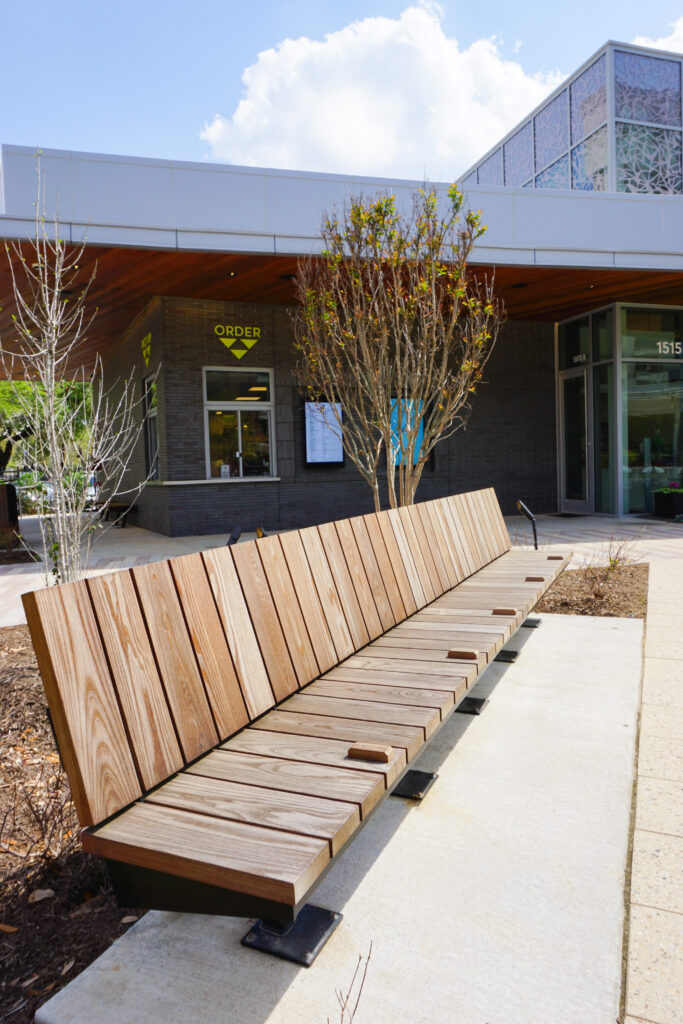 Renfrow was selected at the beginning stages of development to provide pre-construction planning and budgeting insight, as well as create a plan to fabricate a communal area to eat, walk, and enjoy. Custom built and engineered tree grates were installed throughout the park. Benches unique to the design and feel of the park were collaboratively developed with the landscape architect Lauren Griffith, and were built to last. This high volume of custom-created metalwork and furniture showcased our ability to work alongside our partners and develop pieces that are unique to them, while perfect for the needs of the area.